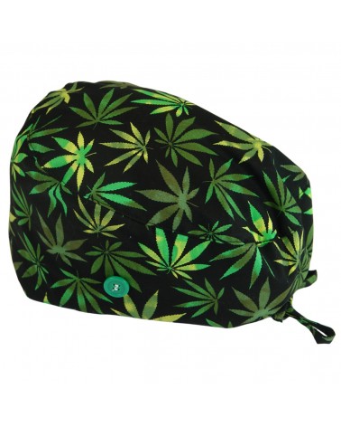 Divertido gorro Hospital Pelo Largo con hojas de María.