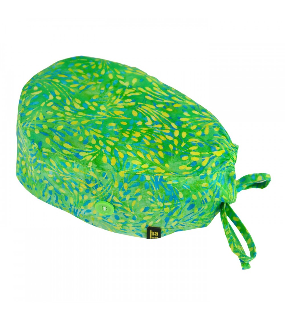 Gorro Quirófano hombre estampado floral verde azul y amarillo.