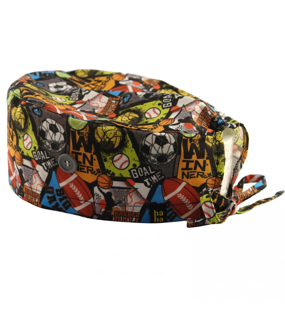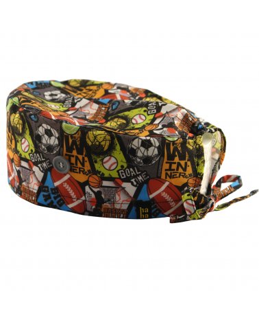 Divertido gorro quirófano deportes para amantes de los mismo, con diferentes balones de fútbol, rugby, baloncesto...
