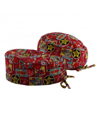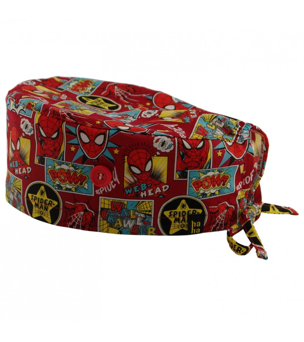 Gorro quirofano spiderman bang: gorro sanitario de pelo corto estilo cómic de superhéroes. Diseñado para jornadas largas en quirófano, hospital o clínica.