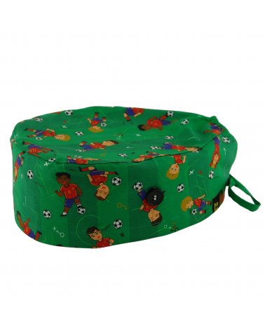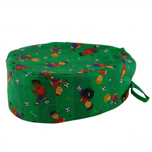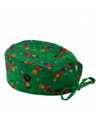 Gorro quirófano MUNDIAL FUTBOL ESPAÑA: gorro sanitario de pelo corto inspirado en fútbol y España. Diseñado para jornadas largas en quirófano, hospital o clínica.