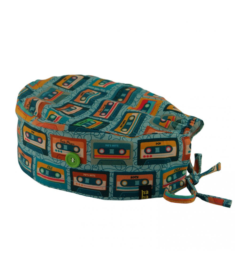 Gorro quirofano OCHENTAS es un gorro de quirófano de pelo corto con cassettes retro. Un básico de algodón para trabajar cómodo y con estilo.