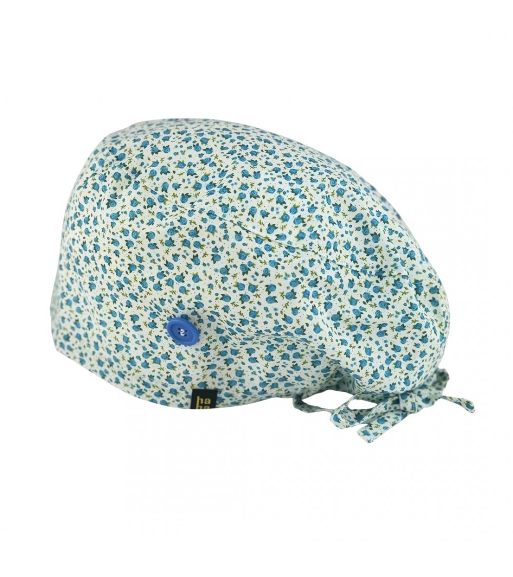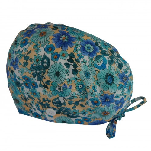 Gorro Hospital Rosas Turquesas. Un gorro para mujeres con pelo largo amantes de las flores, los colores elegantes y turquesas.