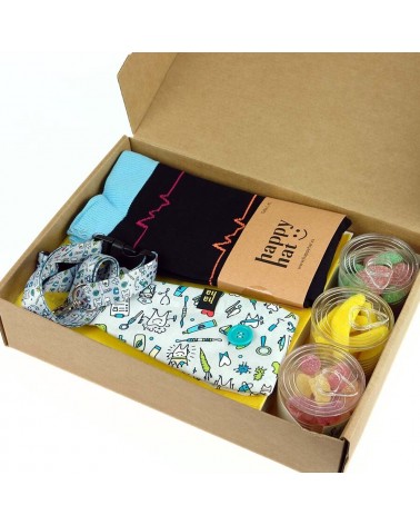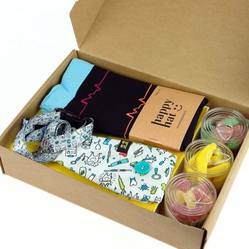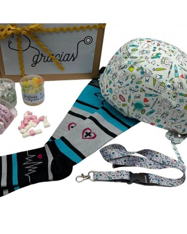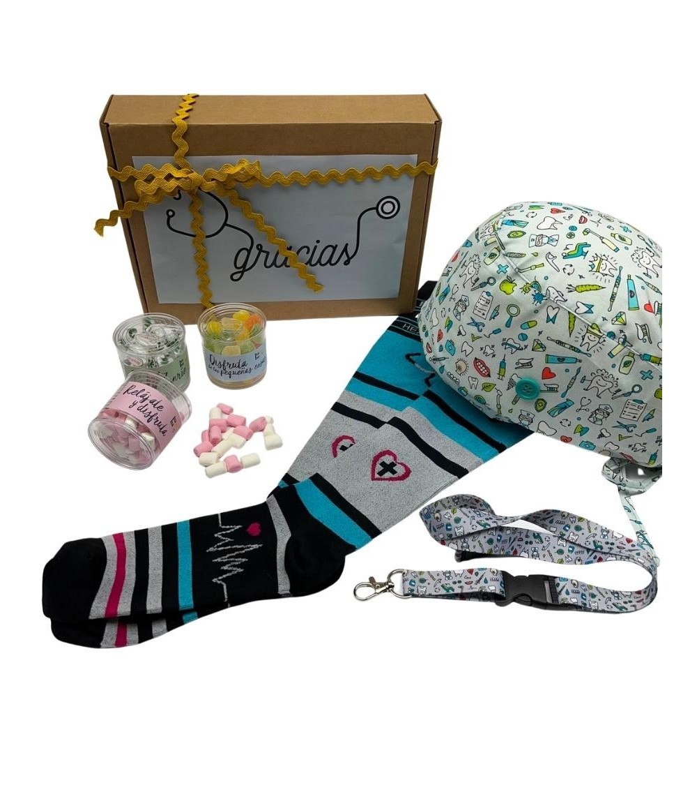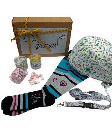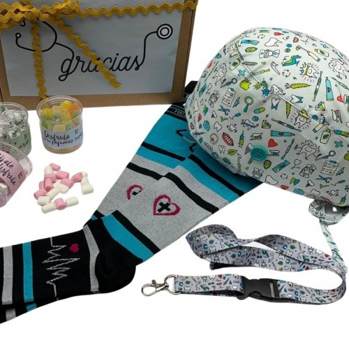 Un regalo muy especial y original para para cualquier profesional del sector sanitario: tu médico de confianza, para la enfermera/o que te ha estado cuidando, para tu dentista que te ha dejado una sonrisa o simplemente un regalo para una persona especial. ¿Qué incluye esta caja? ¡No te lo pierdas, tiene todo tipo de detalles: